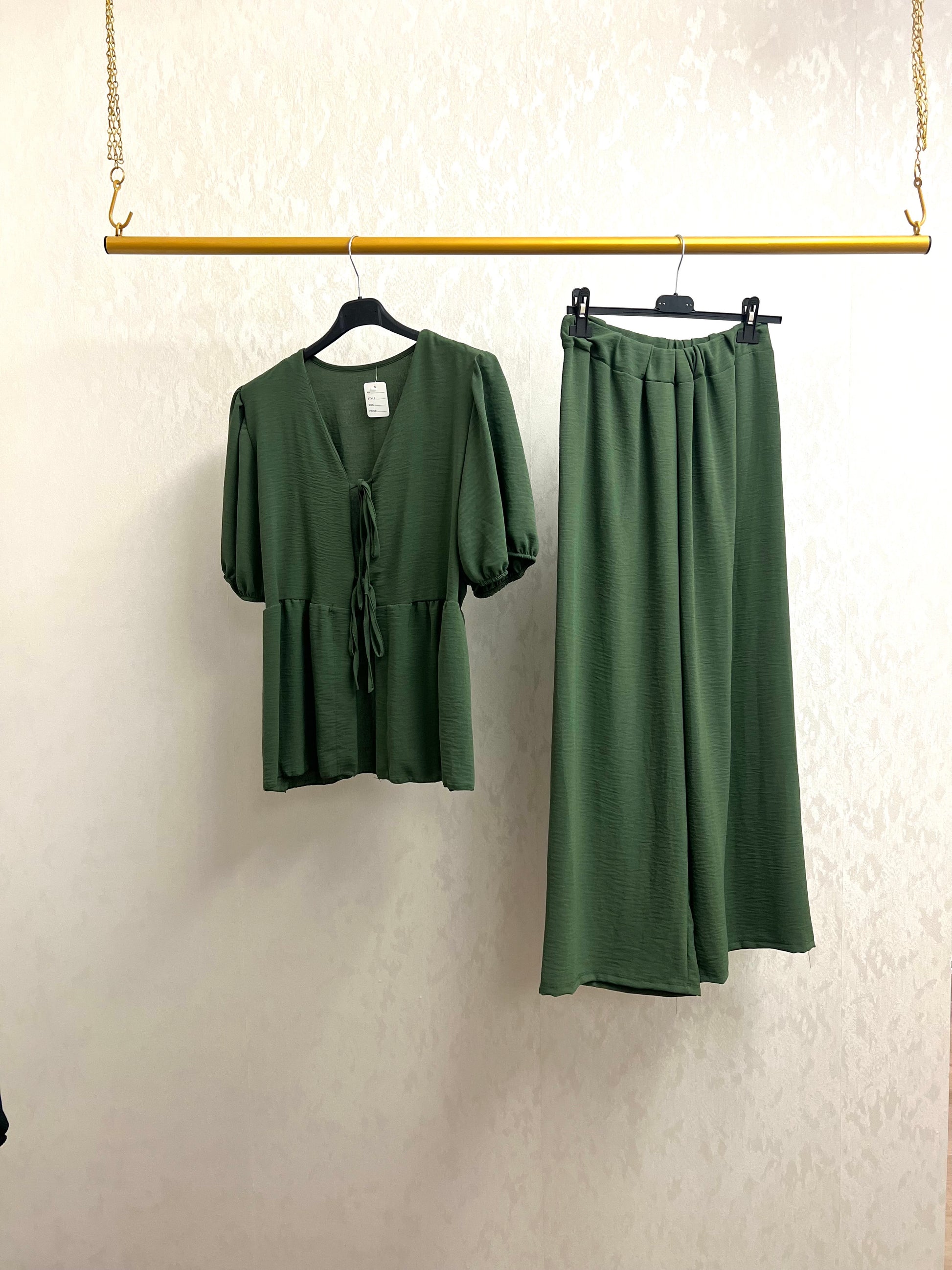 Eleganz trifft auf Komfort! Unser stilvolles 2-Teiler Set, bestehend aus einer trendigen Top und einer locker passenden Hose, ist ein Must-have für jede modebewusste Garderobe.