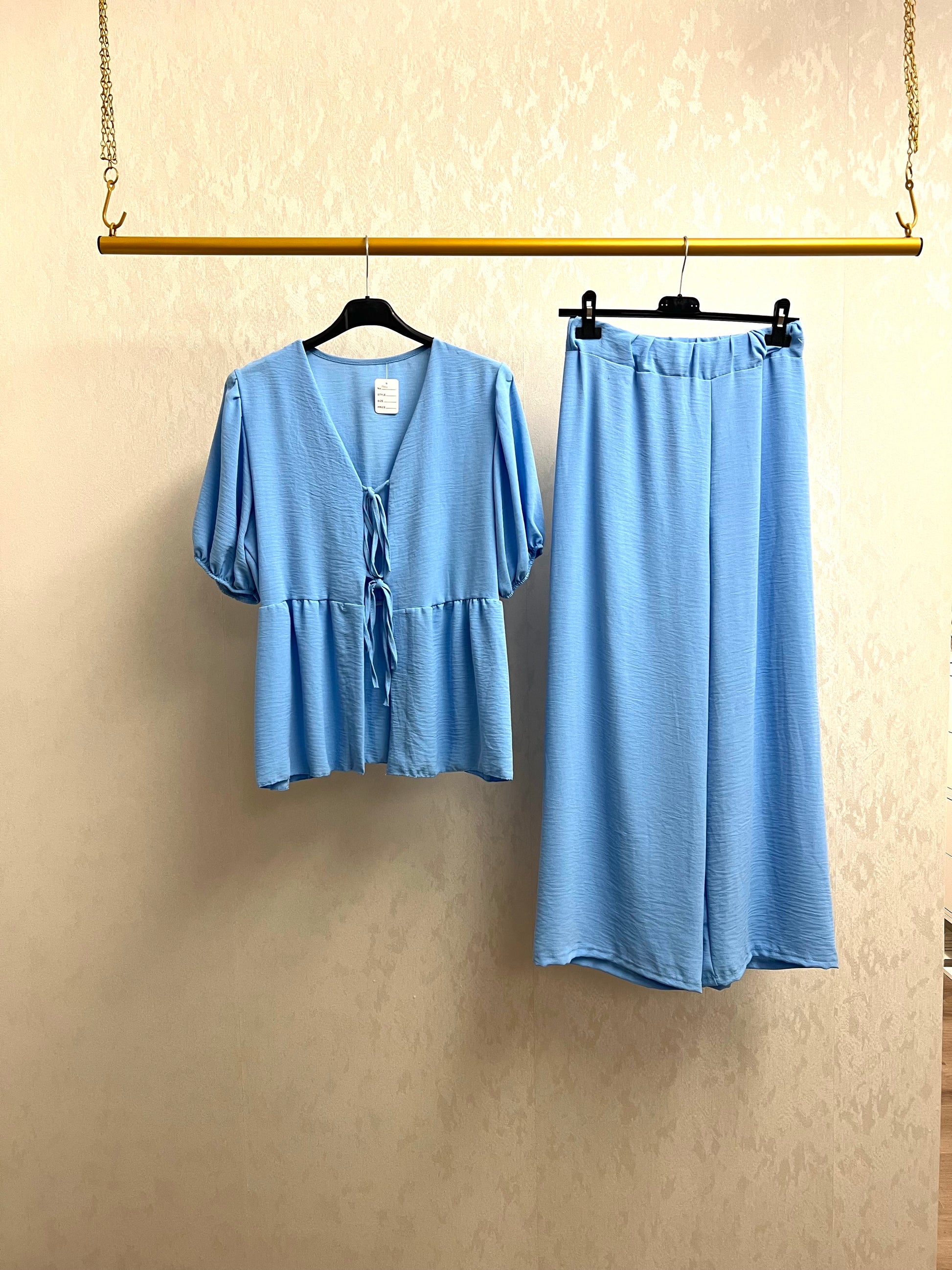 Eleganz trifft auf Komfort! Unser stilvolles 2-Teiler Set, bestehend aus einer trendigen Top und einer locker passenden Hose, ist ein Must-have für jede modebewusste Garderobe.