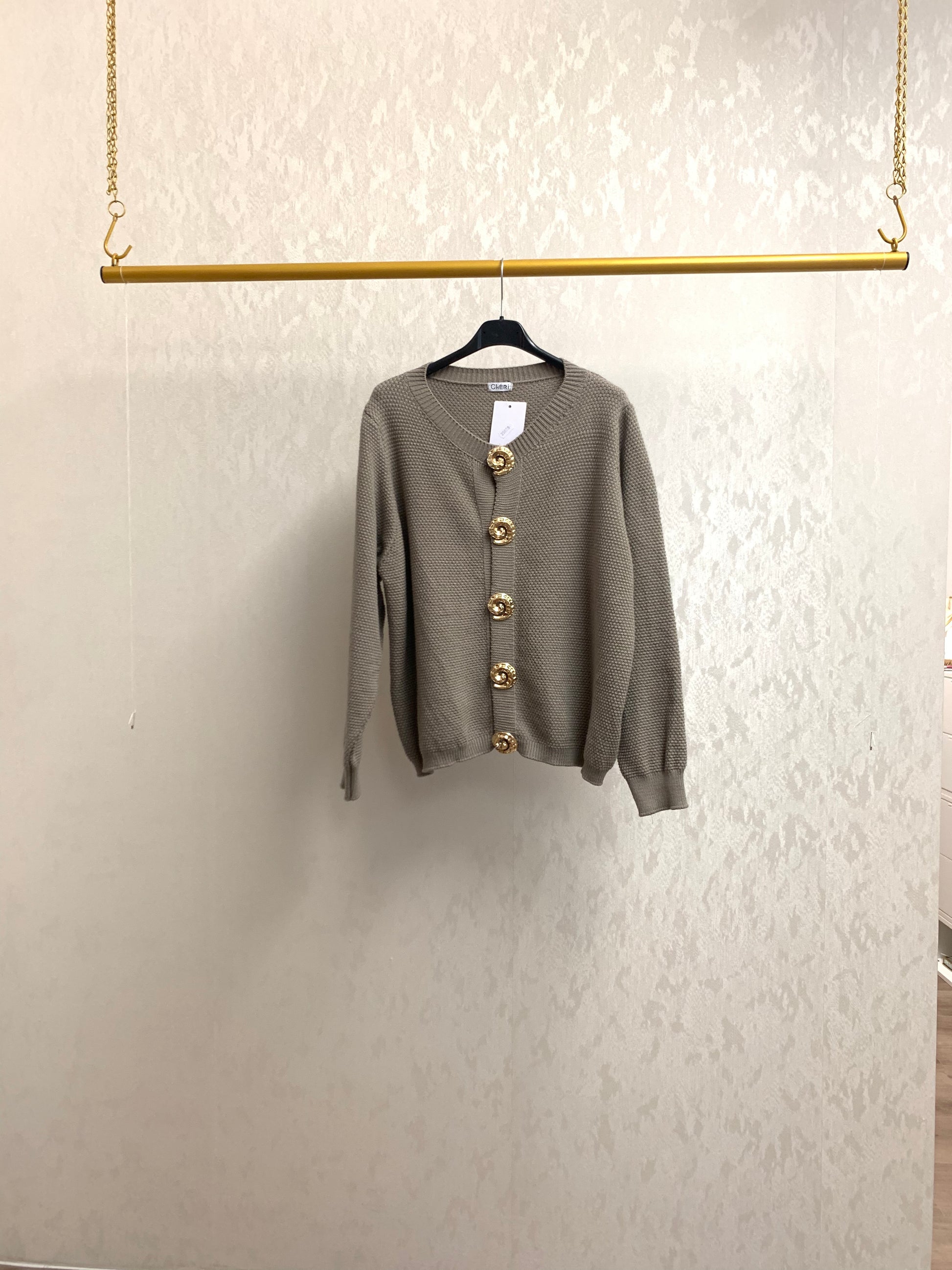 Strickjacke mit goldenen Broschen – Einheitsgröße (XS–L)