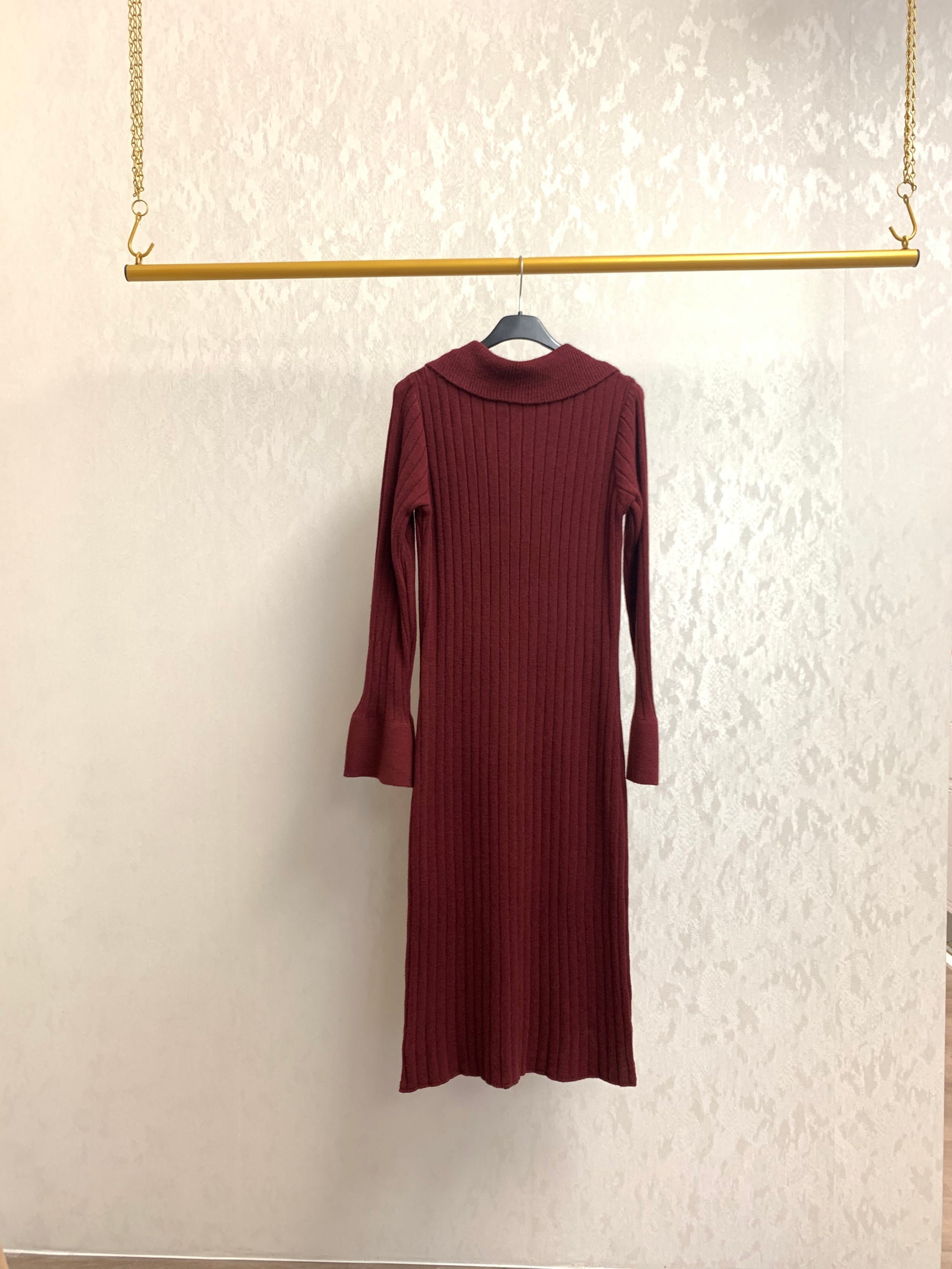 Langes Kleid mit Kragen und breitem Ärmelbündchen